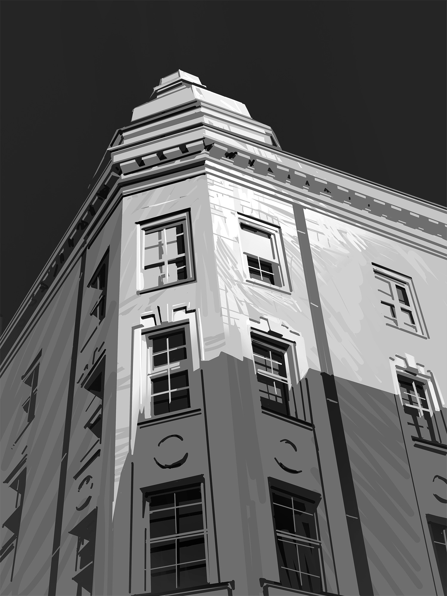 Create 1 to 5 studies, focused on radical simplification, try to interpret not copy directly. Pick well you reference, take one that you find challenging and interesting, an architecture reference would suit the course best. Focus on values and readability, the shapes needs to be readable, try to use brushes without opacity to make clear intentional brushstrokes. Simplify complex informations and make sure your focal point is readable and interesting to look at. This exercise will help you leverage the strength of values by focusing on focal points and establishing a hierarchy of details. Ultimately it will allow you to create more readable and striking images.
